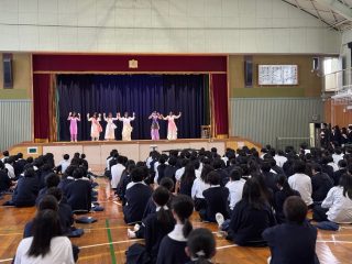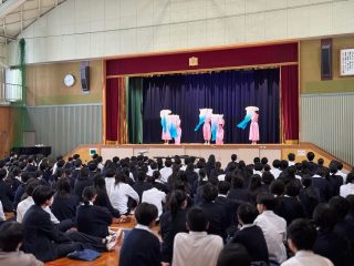 12月12日(金)、茨木市立北陵中学校の全校生徒を対象に、多文化共生部コスモスの生徒による出前授業に訪れました。